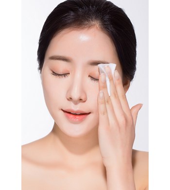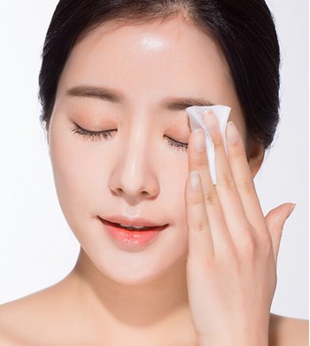 Bước 1: Trước tiên bạn cần làm ướt bông với nước ấm, sau đó lau nhẹ nhàng đều lên trên vùng mắt, dọc sống mũi trước rồi đến các vùng còn lại trên mặt. Việc dùng nước ấm để lau có công dụng làm ẩm da mặt, giúp cho việc tẩy trang trở nên dễ dàng hơn và giúp hạn chế tổn thương đến da.