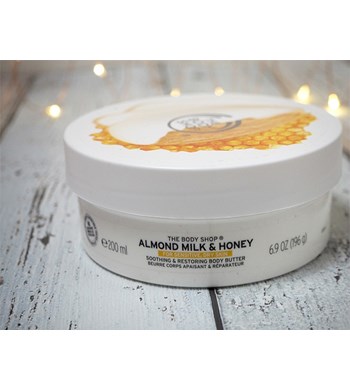 Bơ dưỡng thể The Body Shop Body Butter Cream Almond Milk - Honey dung tích 196ml, xuất xứ Anh hiện đã có mặt tại hệ thống mỹ phẩm chính hãng Beauty Garden. Một sản phẩm bơ dưỡng thể giàu dưỡng chất, tan chảy và thẩm thấu tức thì mang đến cảm giác mềm mại và mịn màng. Sản phẩm có thành phần chiết xuất từ sữa, mật ong và bơ hạnh nhân mang đến hương thơm ngọt ngào đến ngây ngất, dưỡng ẩm suốt 24 giờ, ngát hương dâu ngào ngạt.