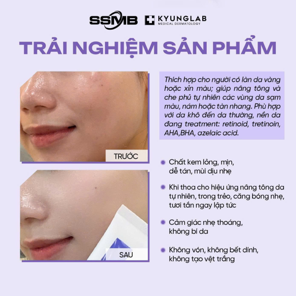 Sản phẩm đặc biệt phù hợp với làn da xỉn màu, da vàng hoặc da đang treatment cần lớp chống nắng dịu nhẹ, dễ chịu.