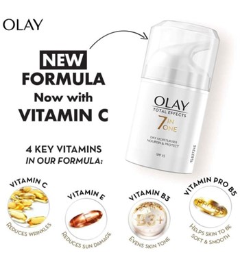 Sản phẩm này còn chứa Niacinamide và chất chống oxy hóa. Olay Total Effects Cream tự loại bỏ tế bào chết để tăng cường quá trình tự đổi mới tự nhiên trên bề mặt da để có làn da khỏe mạnh hơn. Công thức hấp thụ nhanh, không nhờn của kem dưỡng sẽ không làm tắc nghẽn lỗ chân lông của da.