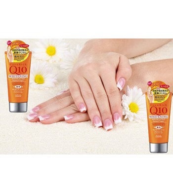 Kem dưỡng da tay Q10 với thành phần Q10 và hỗn hợp Coenzim chiết suất nhân sâm và thảo mộc tự nhiên sẽ thẩm thấu làm hoạt hóa tế bào, dưỡng ẩm và mịn da đặc biệt kem dưỡng da Q10 giúp xóa bỏ dần các đốm nau và chai sần trong lòng bàn tay.