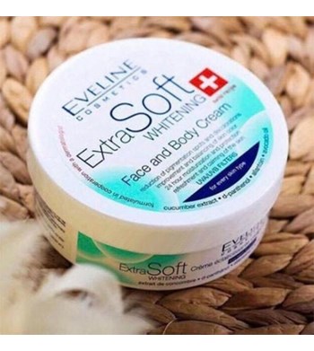 Kem trắng da Eveline Extra Soft Whitening làm sáng da mặt và body, làm giảm thay đổi sắc tố hiện có và ngăn chặn sự xuất hiện của sắc tố melanin, làn da trở nên khỏe mạnh và mịn màng.