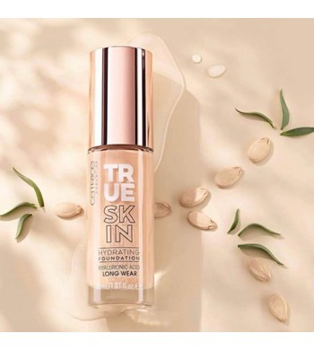Kem Nền Catrice True Skin Hydrating Foundation với khả năng che phủ từ trung bình đến cao cùng axit hyaluronic và dầu hạt dưa hấu, cung cấp độ ẩm chuyên sâu cho làn da, mang đến lớp nền nhẹ mượt.