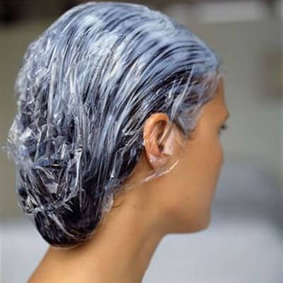 - Bước 3: Sau khi bôi kem ủ, quấn quanh tóc bằng khăn bông sạch, hoặc ủ bằng mũ tắm.
