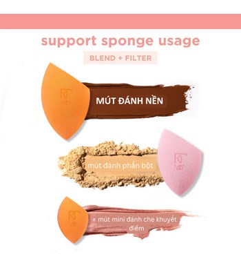 - Phấn tán kem nền (màu cam): Sử dụng Mút khô hoặc ẩm để tán kem nền lên da.