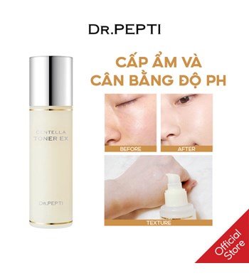 Nước hoa hồng căng bóng, dưỡng ẩm, phục hồi da Toner Dr.Pepti Centella EX không chỉ giúp cân bằng độ ẩm cho da mà còn hỗ trợ tái tạo da, tăng sinh collagen giúp làn da đàn hồi, căng mướt, hấp thu các dưỡng chất tốt gấp nhiều lần, giúp làn da chị em trắng sáng căng bóng mịn màng