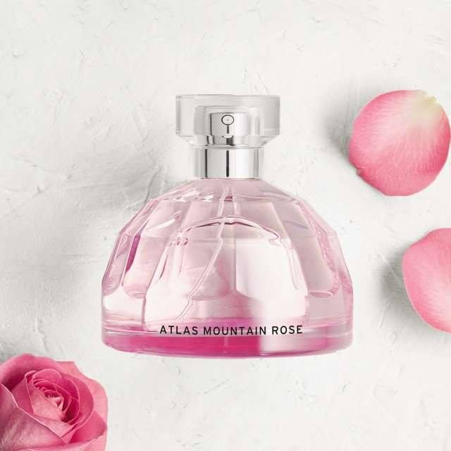 Nước Hoa The Body Shop Atlas Mountain Rose chiết xuất tự nhiên của hoa hồng từ dãy núi Atlas và 100% rượu hữu cơ Community Fair Trade từ Ecuador. Mùi hương lãng mạn, thư giãn với hương đầu của hoa hồng, và gia vị; hương giữa của hoa hồng, hoa mimosa và cam và hương cuối của hoa hồng, gỗ tuyết tùng, vani và xạ hương.