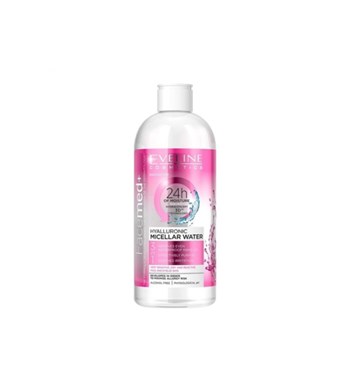 Nước tẩy trang 3 in 1 Eveline Cosmetics Hyaluronic Micellar Water cho mặt, mắt, môi với công thức dược mỹ phẩm – đã được kiểm nghiệm lâm sàng, chống kích ứng, không cồn, độ PH tự nhiên, phù hợp cho Sản phẩm thích hợp cho cả da nhạy cảm.