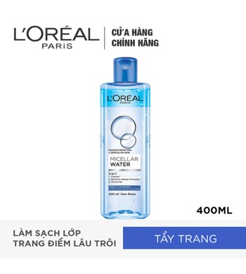 Nước tẩy trang L'Oreal Paris Micellar Water 400ml là một trong những dòng tẩy trang được yêu thích nhất hiện nay. Sản phẩm áp dụng công nghệ Micellar hoàn toàn mới, không chỉ giúp làm sạch lớp trang điểm nhanh chóng dễ dàng mà còn giúp dưỡng ẩm cho da.