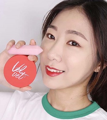 Bước 3: Dùng mút tán có sẵn, lấy một lượng vừa đủ cushion, nhẹ nhàng dặm đều khắp gương mặt.