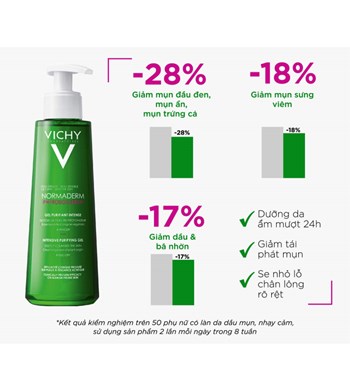 Sữa rửa mặt dạng gel NORMADERM - PHYTOSOLUTION GEL PURIFIANT INTENSE giúp làm sạch sâu và kiểm soát bã nhờn trên da, chứa các khoáng chất quý giá từ nguồn khoáng Vichy và các thành phần hỗ trợ giảm mụn như: Zinc oxide, Copper, Salicylic acid, Bifidus Probiotics… Sản phẩm đã được thử nghiệm lâm sàng và chứng minh hiệu quả trong việc giảm mụn đầu đen và kiểm soát tiết bã nhờn. Đây là lựa chọn tuyệt vời cho làn da sạch sẽ, không còn lo lắng về mụn.