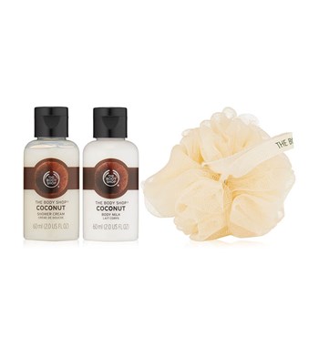 - Bộ chăm sóc da The Body Shop Good Things Inside Coconut gồm 3 sản phẩm: 1 sữa tắm + 1 dưỡng thể + 1 bông tắm