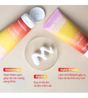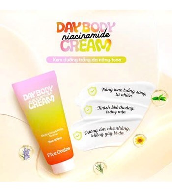 Five Grains Niacinamide Day Body Cream 200ml là dòng dưỡng thể ban ngày giúp cấp ẩm – làm sáng – nâng tông da tức thì, mang lại làn da mềm mịn, đều màu và rạng rỡ ngay sau khi sử dụng.