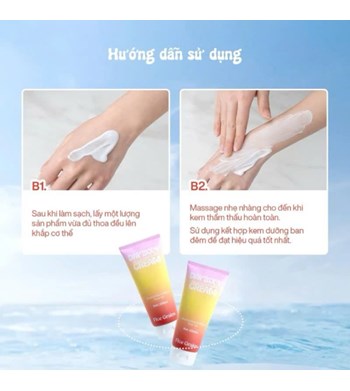Kết cấu: Kem dưỡng thể mỏng nhẹ, thấm nhanh