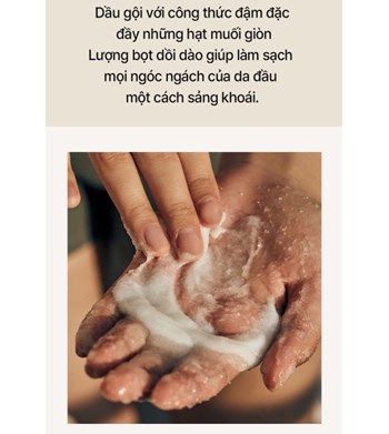 - Các hạt muối cũng dễ dàng hòa tan khi chà sát trong một thời gian ngắn. Vì vậy, bạn không cần phải lo lắng về hạt muối còn sót lại trên mái tóc và da đầu nhé