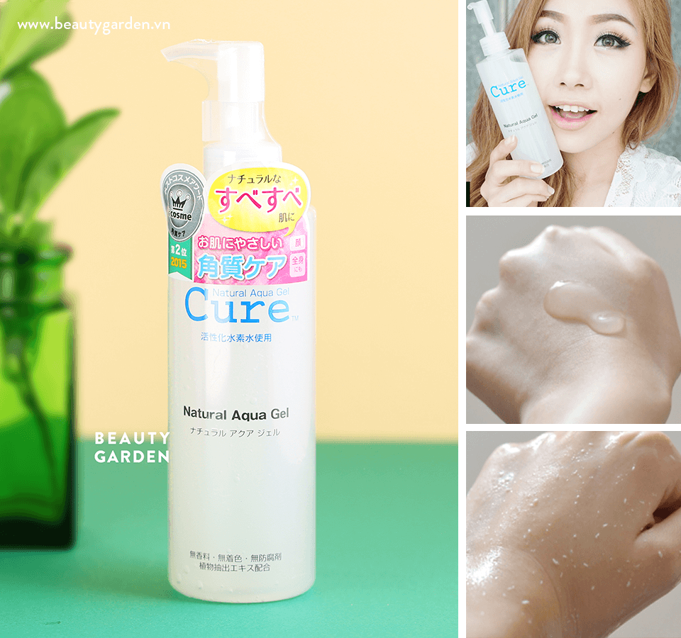 - Cure Natural Aqua Gel nhẹ nhàng bóc vỏ, loại bỏ da chết và protein cần thiết.