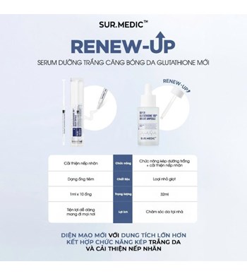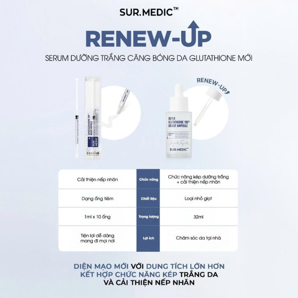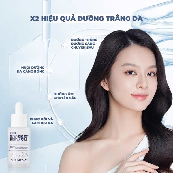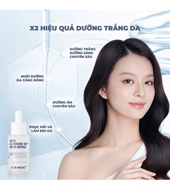 Sur.Medic+ Super Glutathione 1000™ Bright Ampoule 32ml là tinh chất dưỡng da chuyên sâu giúp cải thiện sắc tố, làm sáng và cấp ẩm, mang lại làn da tươi tắn, mịn màng và đều màu hơn mỗi ngày.