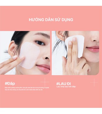 - Dùng làm phương pháp điều trị chuyên sâu: Sau khi rửa mặt sạch, sử dụng ba miếng pad và đặt từng miếng lên trán và má. Để trong tối đa 15 phút như một dạng mặt nạ đặc trị. Vỗ nhẹ phần tinh chất còn lại bằng đầu ngón tay để hấp thụ hoàn toàn dưỡng chất