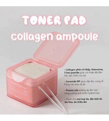 - Miếng Pad Cấp Ẩm Mediheal Collagen Ampoule Pad 100 miếng là một phương pháp dưỡng da theo hướng điều trị nhẹ nhàng mà hiệu quả, sử dụng như một loại nước hoa hồng hàng ngày