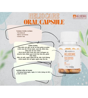 Viên Uống Chống Nắng HELIOCARE là sản phẩm chống nắng đường uống từ thương hiệu mỹ phẩm HELIOCARE nổi tiếng tại Tây Ban Nha. Với thành phần chính chiết xuất từ dương xỉ, viên uống làm đẹp da này sẽ giúp cung cấp khả năng bảo vệ đồng nhất và toàn diện trước tác động của ánh nắng mặt trời, giảm thiểu các tổn thương do tia UV gây ra, giúp ngăn ngừa da lão hóa và mang đến làn da đẹp, khỏe mạnh cho người sử dụng.