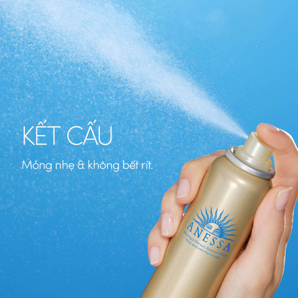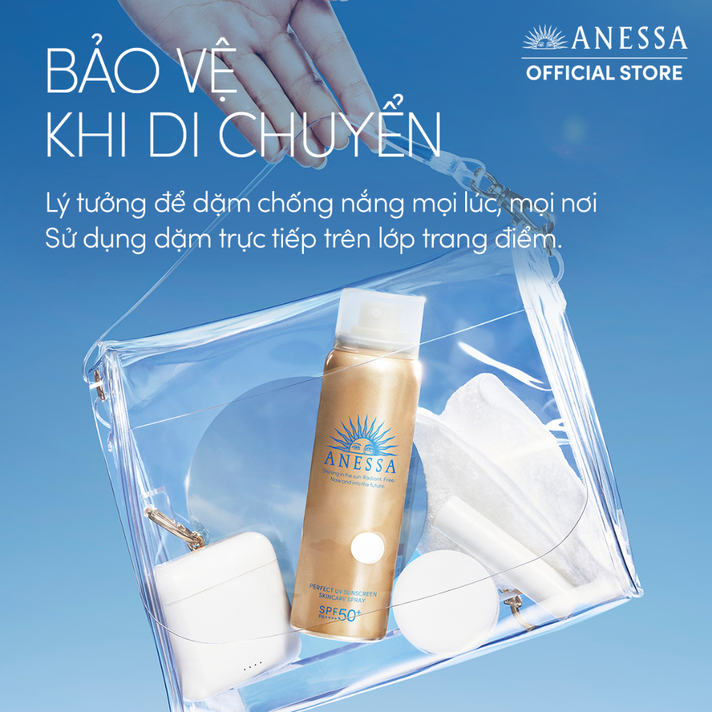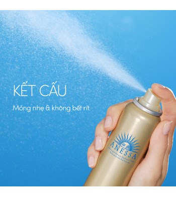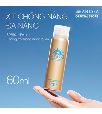 Anessa Perfect UV Sunscreen Skincare Spray N SPF50+ PA++++ ứng dụng công nghệ Auto Booster và Very Water Resistant độc quyền từ Anessa, giúp cho lớp màng chống UV trở nên bền vững hơn khi gặp ĐỘ ẨM - MỒ HÔI - NƯỚC - MA SÁT, đồng thời chống trôi trong nước lên đến 80 phút, chống bụi mịn PM.25 và chống dính cát. Ngoài ra, sự bổ sung của phức hợp 50% thành phần dưỡng da giúp ngăn ngừa lão hoá do tia UV hiệu quả và nuôi dưỡng da ẩm mịn.