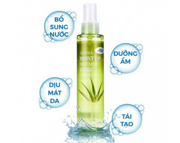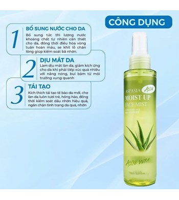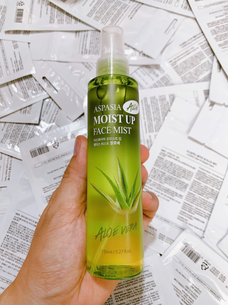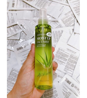 Aspasia Moist Up Face Mist Aloe Vera 150ml là dòng xịt khoáng dưỡng ẩm nổi bật với chiết xuất nha đam tự nhiên, giúp cấp nước tức thì, làm dịu da và phục hồi làn da mệt mỏi do nắng nóng, môi trường hoặc ngồi điều hòa lâu.